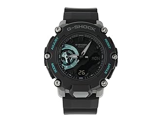 Resistente y delgado, el nuevo reloj deportivo G-Shock® GA2200M-1A tiene una estructura de protección de núcleo de carbono que lo convierte en una herramienta para exteriores de gran apariencia. Presentado en un bisel y banda de resina negra con acentos metálicos y esfera de dos capas. La caja delgada de 12,8 mm del GA2200 está creada usando una nueva estructura que integra el bisel, la tapa trasera y los botones en una sola pieza. Los seis tornillos prominentes que aseguran el bisel crean un aspecto resistente de G-SHOCK.Los botones laterales agrandados proporcionan un mayor grado de resistencia al impacto, eliminando la necesidad de protectores de botones. Esto crea un diseño simple y hace que los botones sean más fáciles de operar. Una banda de tipo palanca de deslizamiento hace que el reemplazo de la banda sea más rápido y sencillo.El indicador de disco en la cara y las partes semicirculares a su alrededor están coloreados usando un proceso de deposición de vapor para una sensación metálica más realista. Cada una de estas partes está separada de la esfera para un efecto tridimensional. Una pantalla digital diagonal en la parte inferior derecha de la cara crea un aspecto único. Correa de resina, cristal mineral, reloj resistente a golpes con cierre de hebilla ajustable.Caja de almacenamiento incluida.Importado.Medidas: Altura de la caja: 48 mm Ancho de la caja: 48 mm Profundidad de la caja: 13 mm Ancho de la banda: 21 mm Longitud/circunferencia de la banda: 9 pulgadas Peso: 2 oz