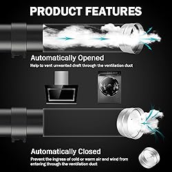 - 【Installation】The backdraft damper is installed by pushing it into the ventilation pipe as far as it will go. The position of the spring should be horizontal when the flap is installed horizontally so that it can be opened and closed optimally. This also applies to the vertical installation. 【Function】This airflow regulating backdraft shutter fits over the TD lip and is designed to improve ventilation by preventing air from re-circulating when the fans are not in use. Back draught valves can be inserted into ventilation ducts which are flexible or non flexible. Cannot be used with plastic ducts as the sizes are different. 【Wide Application】 These backdraft dampers can be widely used in ACs, exhaust fans, extractors, range hoods, heating ducts, vents and other residential, commercial and industrial applications. All dimensions are measured manually, please allow 1-3mm differences.