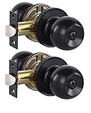 Lanwandeng (2 Pack) Matte Black Interior Door Knobs with Lock for Bedroom/Bathroom, Keyless Privacy Door Knobs for Bed/Bath