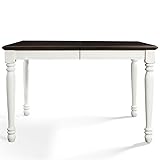 - Dine-in elegance with the Shelby dining table. Designed with tradition in mind and crafted with solid hardwood and wood veneers, gather the whole family to sit at the table. With room for six, there's plenty of space for everyone. For smaller gatherings, simply remove the middle leaf for a more intimate table setting. Easy to assemble, charming details like the classic turned legs and beautiful rubbed antique tabletop make this piece one last. Features: - Finish: White - Material: Bentwood 30%, Solid Rubberwood 70% - Traditional design fits any décor - Comfortably seats up to 6 - 18" leaf expands table to seat six - Turned legs with carved details - Easy to assemble Specifications: - Product Weight: 88 lbs - Product Dimensions: 30.75" H x 65.25" W x 36" D - Recommended Location: Indoor - Recommended Room: Dining Room