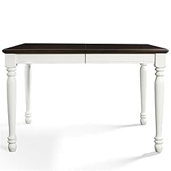 Finish: White Material: Bentwood 30%, Solid Rubberwood 70% Traditional design fits any décor Comfortably seats up to 6 18" leaf expands table to seat six Turned legs with carved details Easy to assemble