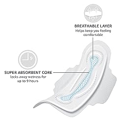 REGULAR ABSORBENCY: Experience up to 9 hours of leakage protection with our maxi pads that offer an ultra-absorbent core to lock in moisture COMFORT: Our feminine pads feature breathable outer layers, wicking away moisture to maintain a fresh, dry feel FLEXI-WINGS FOR SECURE FIT: Designed with pads with wings, these provide a secure fit DISCREET AND CONVENIENT: These period pads are individually wrapped, allowing you to easily carry a spare in your bag for discreet period protection and convenience on the go FIND YOUR FIT: Use our sizing chart to find the fit you need in menstrual pads for women, for tailored coverage, protection, and comfort TRY IT: If you like Always Maxi Pads with Wings, we invite you to try Amazon Basics Maxi Pads with Flexi-Wings. Product of USA or Canada