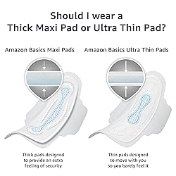 Amazon Basics Thick Maxi Pads with Wings for Periods, Regular Absorbency, Feminine Pads, Unscented, Size 1, 36 Count