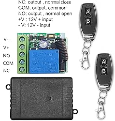 【164ft/50m Long Range】The volume is small and the performance is stable and reliable, high receive sensitivity, Signal can pass through walls, floors and doors. Max range is up to 164ft/50m with no obstacle. 【Wide Application】Application for industrial control and security fields, such as light, motor, remote controller, wireless security alarm, wireless door alarm, wireless controller, etc. 【Flexible Control】Reliable control,the receiver only works with the transmitter which use same code. One/several transmitters can control one/several receivers simultaneously, allowing independent control without mutual interference. Warm Tip :Support remote type: EV1527 learning code. 【Easy to Install & Stable】Wireless control, easy to setup and use, Stable and reliable performance, high receive sensitivity, high confidentiality. 【Package Includes】Comes with 2 Pcs 2 button Transmitter and 2 Pcs 1CH receiver. NOTE: Please email us if you meet any problem, we are always here to help, thanks!