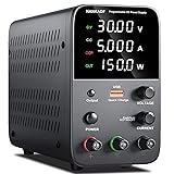 DC Power Supply Variable, Bench Power Supply with Encoder Adjustment Knob, Output Enable/Disable Button, Adjustable Power Supplies with USB Quick-Charge, Short Circuit Alam (30V 5A Black)