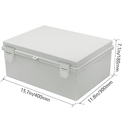 【Accessories Contained & Easy for DIY】: Coming with a mounting plate and wall brackets, 2 cable glands. The mounting panel for easy installing PCB board, terminal or any other electrical components which need to be fixed on; and the junction box can be easy to be installed on the wall with the wall brackets, our outdoor enclosures can be drilled and shaped easily without cracking, so it’s suitable for your various DIY projects. 【Product Size】Outer Size of enclosure box (Approx.): 15.74" x 11.81" x 7.09"(400mmx300mmx180mm)(L*W*H); Inner Size(Approx.): 15.08" x 11.14" x 6.5"/383mm x 283mm x165mm(L*W*H)- - (Allowable Error: 2mm). 【Industrial Electrical Box】: electrical unit is not only weather resistant but also waterproof and does not allow dust to enter. You can drill holes inside depending upon your project requirement with no cracks and compromise 【Easy to operate】: electrical unit is easy to install, Hinged enclosure makes the opening and closing easier; For the internal mounting, industrial enclosure features an mounting bosses,more convenient for your project. 【IP65 Waterproof Rating】: Our outdoor project boxes are IP65 certified,effectively block splashing water, rain, dust, snow, oil,etc.,keep all your electrical equipments clean and dry, can be widely used for both indoor and outdoor applications 【Comprehensive Industrial Enclosure】: The junction box features two or three plastic latches for added security and locking. 【Package Contents】: 1 x Grey junction box, 2 x N-P-T 1/2" cable glands. (Cable connector for wire diameter range: 7-12mm)