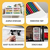 IRIS USA Medium 3-Drawer Stacking Desktop Organizer, 1 Pack, Plastic Drawer Storage Container for Stationery Art Craft Supplies Kitchen Office Garage and Small Business Organization, White