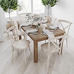 • Bring rustic charm to your dining room with the Merrick Lane Jessamine Farm Table. Made from solid pine, this dining table features a 1" thick plank top and 4" apron for strong, long-lasting support. The antique finish adds farmhouse style, ideal for family meals and gatherings. Use without linens for a casual look or add a tablecloth for weddings and showers. While designed for indoor use, this wooden kitchen table can be used outdoors in fair weather for events like barbecues or reunions. Perfect for any occasion, this country-rustic dining room table comfortably seats up to four adults.