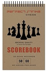 CHESS SCOREBOOK : Perfect Strike archival quality, heavy duty chess scorebook. Convenient size for scoring chess games and matches. 5.5" x 8.5". 50 Games records per book. 60 possible chess moves per game. Classic score book design, improved for easier recognition. Included with the chess score book are sheets for Rules, Scoring and Board Positioning. TOUGH COVERS : The chess scoring book comes with heavyweight front and back covers. The durable design makes the move recording book resistant from tearing and stays intact during a long season. The extra-heavy back cover provides additional support when needed for writing. DURABLE BINDING : Perfect Strike chess scoring books are fitted with a durable PVC spiral binding that is resistant to bending or breaking. The binding holds up better than metal binding. HEAVY SHEETS : Perfect Strike scoring sheets are printed on thick 67 lb premium multi-media paper. Score book markings won't bleed through. The scoresheets work great for pencil, pen, marker and most any type of writing device. MADE IN THE USA : Perfect Strike chess scorebooks are made in the USA by Perfect Strike Sports.