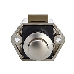 - Experience the convenience of keyless entry with the NAERDI 5 Pack RV Lock Push Button Latch Lock. Constructed with high-quality zinc alloy button rod and thickened ABS, this lock is built to last. The small size of the lock helps prevent indoor furniture cupboard doors from opening during movement. This lock is versatile and can be used for RV motorhome drawers, camper caravan doors, kitchen cupboard doors, and household cabinets. It fits door board thickness of 15mm-27mm and requires a cut hole of 20mm. The package includes 5 locks and knobs, with a total item weight of 181g. The knob is made of Acrylonitrile Butadiene Styrene, and the finish type is nickel. The lock type is a push button latch lock, and it is easy to use - simply push to lock or open the door. The lock is designed in a modern style and is available in pearl nickel color. The product type is hardware handle, and the material composition is Acrylonitrile Butadiene Styrene, Zinc Alloy, and Nickel.