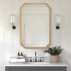 - WallBeyond 24" x 36" Rounded Corner Arch Wall Mirror with Wood Frame for Entryway, Living Room or Bedroom Home Decor - Light Woodgrain [24" x 36" Natural Color]