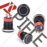 Brand New Black Aluminium Alloy Ring LED 19mm Latching Push Button Switch; LED voltage: 12V-24V DC, Hole size required: 0.74''/19mm Latching switch: Push it, ON; Push it again, OFF. Contact Configuration: 1NO1NC Electrical life: 200 thousand times. Mechanical life: 1,000,000 cycles High quality metal material & IP65 waterproof protection can be used in wet or dusty enviroment. What you get: 6 pcs push button switch, 6 pcs pre wired quick connector, 1 wiring diagram.