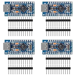 AITRIP 4PCS Pro Micro ATmega32U4 5V 16MHz Type-C Development Module Board with 2 Row pin Header Compatible arduino Leonardo Replace ATmega328 Pro Mini