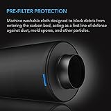 - Product DescriptionA clothed filter designed to lengthen the lifespan of your carbon filter by keeping debris from entering the charcoal bed. Each form-fitting prefilter is made of polyester capable of blocking particles like dust, lint, pollen, and hair while allowing complete air passthrough. This ensures that your carbon filter properly traps odors in its activated charcoal and refines the air when used with an inline duct fan. The breathable prefilter cloth is machine washable and is long-lasting, reusable up to six months between cleanings. Vacuum the prefilter to remove the dust before throwing it into the washer, and hang dry the cloth to prevent shrinking. ApplicationsThis replacement prefilter cloth is fit for carbon filters, acting as the first line of defense against particles that can clog up the charcoal bed. Slip onto the exterior for use in intake airflow applications, or into the inner chamber for exhaust configurations.