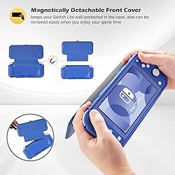 Protective flip case designed for Nintendo Switch Lite 2019; Slim and lightweight, easy to carry Made from soft TPU back cover and high quality nylon material front cover, easy to put on and take off, also protects your Switch Lite from dust, bumps and drops; The microfiber interior keeps your Switch screen free of scratches Innovative magnetically detachable front cover protects your Switch Lite Joy Con Controllers and buttons and also can be removed easily when you enjoy your game time Ergonomic handgrip design offers a comfortable grip for playing in handheld mode, enhancing your game experience;Precise cutouts ensure full access to all the controls and features without removing the case Come with extra 2x Switch Lite tempered glass screen protectors and installation kit; Install easily and bubble free; High definition with 99.9% transparency, effectively protects the entire screen