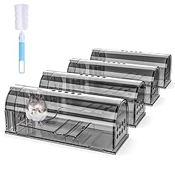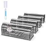 4 Pcs Humane Mouse Traps No Kill, Live Mouse Traps Indoor for Home, Reusable Mice Small Rat Trap Catcher for House & Outdoors(Grey)