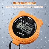 - Features: Nice and practical design: The stopwatch timer for sports is delicate and simple in appearance, bright and eye-catching in color, with a large display, making the data on the screen easy for you to see, owning practical functions, bringing convenience to your life. Easy and portable to carry: These stopwatches with lanyard are mini and lightweight for you to hold or carry. The round design will bring you a comfortable using experience, to control the time timely. You can store them in your bags, pockets, boxes, or others, saving your time and energy. Specifications: Material: plastic Color: black, blue, red, orange Size: as pictures shown Quantity: 12 pieces Package includes: 3 x Red stopwatches 3 x Orange stopwatches 3 x Blue stopwatches 3 x Black stopwatches Note: Manual measurement, please allow slight errors on size. The color may exist slight difference due to different screen display. Winding risk may exist, please keep away from kids under 3 years old.