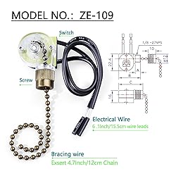 - Specification: 2 Wire :ON- OFF Switch Type: Pull chain switch Operating voltage: 125 ~ 250 V Overload current: 6 A Electrical Rating: 6A/125VAC - 3A/250VAC Certifications: UL approved (USA) - CSA certified (Canada) Kindly remind: Please disconnect the power to the fan before removing the old switch and make sure to write down the position of all wires that you disconnect in the process of removing the switch. Must pay attention to electricity safety!!