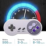 - Great wireless rechargeable controller for SNES ❶No input lag,plug and play, authentic wireless SNES style controls. ❷The controller includes a microUSB to standard USB cord for recharging it,you don't have to worry about replacing batteries. ❸The top of the controller has an LED that changes to red when it needs to be charged. Reset your classic wireless controller via button command:Down+Start+Select for rest Please read before use:/b> 1.Make sure the controller is fully charged prior to first use to ensure battery is at maximum capacity. 2.Make sure to use a standard 5V 1A charger to avoid damage to the controller What's in the box: 2* 2.4G wireless Controller 2* 2.4G Wireless SNES Receiver 2* USB Charging line 2* Instruction manual