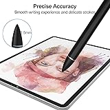[Ergonomic Design] Slim, sleek and well balanced in your hand, this capacitive stylus has a beautiful feel and touch when in use. It promotes your work efficiency, making drawing and writing easier than ever. [Enhanced Accuracy] With 1.5mm fine tip to gain even the tiniest details within your sketches and drawings, it opens up new creative possibilities and helps you produce a wide range of artistic effects. [Universal Compatibility] One stylus pen for all your digital products, compatible with all capacitive touch screen devices, including iPad, iPhone, Samsung, Android phones and most popular tablets. [Quick Start] No pairing or app to mess with, it can be used on multiple devices at once. Unbox the stylus, click on the top button and immediately start to write with accuracy and ease. [2 in-1 Tip Design] The combination of fine point tip and mesh cap can meet most of your daily needs. The magnetic mesh cap provides protection against dust and damage, also can be used as a normal tip when the touchscreen pen running out of power.