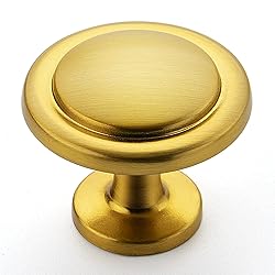 365-Day Evaluation: We believe you'll value these cabinet knobs. Use them for a full year, and if they don't meet your needs, we're here to assist EURO-Style: This cabinet knob is an ideal way to beautify an entire room Make cabinet hardware a part of your home décor today Size of Round Knobs:Diameter 1-1/4";Base Diameter: 3/4" ; Height: 7/8" Enduring design& fine touch: With advanced technique, the door pulls are made to be long-lasting, accompanied with good looking and fine touch Simple look: The Brass cabinet knobs have a wide appeal across a range of kitchen cabinet doors and drawers. The Brushed Brass knobs have a clean and timeless look that works with farmhouse, vintage, traditional and transitional styles