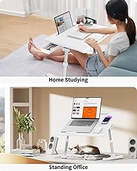 Laptop Bed Tray Table, SAIJI Adjustable Bed Desk for Laptop, Foldable Laptop Stand with Storage Drawer for Eating, Working, Writing, Gaming, Drawing (White, X-Large)
