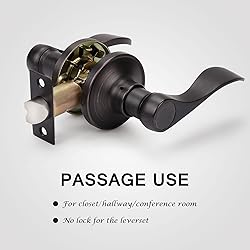 EASY INSTALLATION: Install your leverset in a flash. All you need is a door and a tool set! No need for professional door fitters, you can do it yourself! PASSAGE FUNCTION: No lock for the leverset. Use it for any door for spaces that need to stay accessible, but where you sometimes need peace and quiet - closets, hallways, consulting or conference rooms; Material: Zinc Alloy; Finished Color: Oil Rubbed Bronze. ONE SIZE FITS MOST: This bronze door lever fits 1-3/8" to 1-3/4" doors; Reversible for both left handed and right handed doors. (Notice: The latch plate is unremovable.) QUALITY IS BUILT IN: The solid zinc alloy and brass, smooth finish, polished appearance and substantial, easy-to-grasp lever will subtly elevate and enhance commercial areas or residences alike. WAVE DESIGN: It’s not just a door lever — it’s a statement piece. These gorgeous levers with no protruding flanges, screws or rough edges ensures completely safe and easy operation, are sure to add a touch of sophistication to your home.