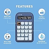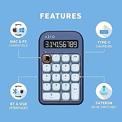 - AZIO IZO Wireless Mechanical Calculator & Number Pad (Blue/Gold) - Bluetooth 5.0 & USB, Gateron-Blue Mechanical Switch, 9 Backlight Modes, Rechargeable, PC & Mac Compatible, Blue Iris (IN105)