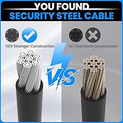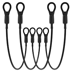 - Coating Security Wire Rope Cable with Double Loop-ends Widely used in bikes, chain lock, helmets, boats, snowboards, outdoor travel, clothesline, transport, home decoration hanging and so on. Specification: Material: Stainless steel wire rope Construction: Braided and PVC Coated Total Length: 23.6 inch/ 60 cm Thickness: 5 mm Loops: Aluminum sleeve crimped Color: Black Package includes: 4 pcs heavy duty braided steel wire ropes with loop ends