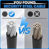 PVC coating wire rope cable, 5mm thickness and 23.6 inches length, made of stainless steel to ensure flexible, stronge and durable. Braided steel construction provides strength and flexibility along with strong cut resistance. Recommended for use in a range of less than 200lb. Completely sealed with smooth coating to provide rust resistant, and protect against scratching and finger injury. With Aluminum crimp sleeve looped ends for hanging and securing, suitable for outdoor travel, home decoration hanging, transport, weatherproof strands and other application scenarios. Due to the heavy duty, Security and sturdiness of the wire rope, it can protect your belongings from loss, and can used for hanging lights, clothesline, load up to 220 lb.
