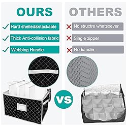 🥂【 24 Cells】: The size of this VERONLY wine glass storage box is 15.5" x 12.5"x 10", 2pcs in a pack, each with 12 dividers, which is large capacity to hold 24 different kinds of glassware, such as wine glass, champagne flute, stemless crystal glasses. 🥂【 Lid & Label Window】: Lids of these china storage containers allows them stackable and keeps your glass dust-proof. Also, we design the lable window for you to classify your goblets, keeps your kitchen, cupboard, dinnerware organized. 🥂 【Durable Material】: The interior of these stemware storage cases are assembled from thick cardboard, exterior are made of soft quilted plush padding, which is lightweight but strong, can protect your wine glasses from impact and breakage. Two-way zipper pull makes it more convenient for you to take your glass. 🥂【 Foldable & Easy Installation】: These stemware storage organizers are foldable, you can quickly assemble it yourself, and fold it for space-saving when not in use, and it is also portable for carrying, moving, many people use it in their motorhome. 🥂 【100% Satisfaction】: If you have any questions about our products, please feel free to let us knwo, we are always here and will try our best to give you a 100% satisfactory solution. So, please give this glassware protector box a try:)