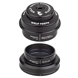 S.H.I.S. Designation: EC44/28.6 Upper, EC49/40 Lower Head Tube Length: Long 115-140 mm Adjust the geometry of your bike by changing the head tube angle by 2 degree with the GeoShift 2 degree Performance Angle Headset. It allows you to change the head tube angle by minus 2 degree to make for a slacker geometry for added stability on fast descents, or by plus 2 degree by using the opposite orientation of the headset to make for a steeper geometry for quicker steering with maximum front wheel traction. The GeoShift Performance Angle Headset features a design in which the bearings sit at an angle that aligns with the steerer tube. This compares to angle headsets that have bearings that sit flat, which adds unneeded friction and stress on the bearings. The design with angled bearings also prevents the creaking that is common with angle headsets that feature a spherical design. Wolf Tooth headsets are machined in the USA with lightweight, strong, durable 6061 aluminum. Our Performance Headset is built to include an Enduro black oxide coated chromium steel bearing, a one year warranty, and three levels of superior custom sealing to protect bearings from the elements and prolong the life of the headset.