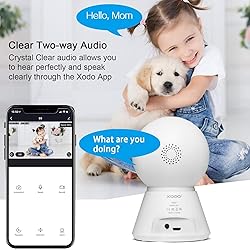 E6 WiFi camera captures video in Super HD at a resolution of 1920 x 1080 resolution, and with infrared LEDs, it can see up to 25ft in the dark. Best 3 Pack camera system for home wireless Using the free Xodo Smart software, you can live-stream remotely. With the built-in mic and speaker, you can hear and speak through the security camera. A perfect indoor wireless cameras for home security. Xodo E6 wireless surveillance cameras connect to 2.4 GHz WiFi and can run in mins. FHD 1080p 110° wide-angle enhanced lens combined with 355° horizontal & 90° vertical rotation range create a complete 360° coverage to see details clearly. See all corners of your home on Xodo Smart app. Motion-triggered recordings can be uploaded to Xodo cloud (Subscriptions Available). Video Cameras Wireless Motion clips can also be saved to a micro SD card (Not Included). Supports 24/7 long monitoring when connected with Xodo Smart. View live video of hyndsight and playback saved footage anywhere and anytime. Hands-Free control of your indoor cameras with your voice.