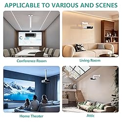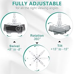 Compatibility: Universal Projector Mount Bracket for Both Ceiling and Wall Installation. Applicable to mounting holes distance between 8.9’’to 12.4’’ Heavy Duty: Made of high-grade steel, support up to 44lbs. Regular concrete and brick ceiling or wooden stud supported. NOTE: This mount does NOT support the vaulted ceiling and regular drywall Fully Adjustable: Tilt +/- 15 degrees and swivel +/- 8 degrees. Low profile design for quick and precise projector positioning. Pole length adjustment for ceiling installation is 16.9 inches to 25.6 inches and for wall mounted installation is 13.8 inches to 22 inches Universal installation:1. Flush Ceiling Installation, 2. Telescoping Arm Ceiling Installation, 3. Wall Installation. Can be installed on wood studs, concrete and wall surfaces, flat ceiling, drop ceiling, suspended ceiling, etc Package Includes: WALI Projector Ceiling Mount (White) x 1, Mounting Hardware Kit, User Manual, experienced and friendly US based customer support available to assist 7 days a week