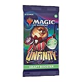 - Each Unfinity Draft Booster contains 14 Magic cards, 1 Sticker sheet, and 1 ad card/token, with 1 Rare or Mythic Rare card, 2 Attraction cards of any rarity, 3 Uncommons, 7 Commons, and 1 Full-Art Space-ic Land card (Planetary land in 72%, Showcase Orbital land in 24%, and shock land in 4% of packs). A traditional foil card of any rarity replaces a Common in 33% of Unfinity Draft Boosters. Traditional Foil Borderless Mythic Planeswalker in <1% of boosters.