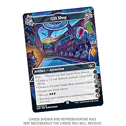 14 Magic cards + 1 Sticker sheet 1 Full-Art Space-ic Land in every pack—Borderless Shock Land replaces Space-ic Land in 4% of Draft Boosters 1 Rare or Mythic Rare card in every pack Full of out-of-this-world mechanics and infinite laughs Draft with 3 boosters per player, add lands, and play Step right up and experience the Multiverse's ultimate intergalactic amusement park