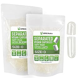 Fast Capsule Filling - These empty pill capsules come pre-separated to make the capsule filling process quick and simple. Say goodbye to crushed capsules... Our 0 separated capsules are specially designed to be used with your capsule filling tray. Separated capsules size 0 hold 400mg to 800mg of powdered supplements, depending on density. Snap Shut Design - Our expertly engineered snap shut design ensures you won't waste any of your valuable powders, herbs or ingredients during or after filling your pills. The click shut feature also helps protect the contents of your size 0 capsule separated from humidity and air. Have peace of mind knowing that your vegan capsules size 0 are secure. Easy to Digest - Our veggie capsules are made from HPMC vegetable cellulose and will easily dissolve in your gastrointestinal tract for maximum absorption of your supplement ingredients. These vegan capsules empty 0 are Kosher with no additives, preservatives, or gluten. Be sure to check out our line of gel capsules empty and powdered supplements. Customize Your Supplements - At XPRS Nutra, we go the extra mile to provide premium vegetable capsules for use with all kinds of supplemental powders. We aim to be your one-stop-shop for all things related to filling empty capsules. Try using your capsule machine pill maker with our empty gelatin capsules and powders to create your own supplement blends. Subscribe and Save - We know you'll love the quality and convenience of our clear capsules empty. We source from trusted suppliers and process all of our inventory in Utah, USA. Up your health game this year with our empty capsules 0 separated. Visit our storefront to see our full line of gel caps, vegetarian capsules, powdered supplements, and more.