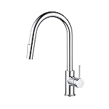 KIBI Circular Kitchen Faucet with Pull Down Sprayer | Single Handle High Arc Solid Brass Spout | Easy-to-Use Kitchen Sink Faucet with Dual Function | Chrome Finish, KKF2013