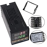 Digital PID Temperature Controller REX-C100 PID Thermostat Temperature Controller Digital REX C100 with 25DA SSR Relay K Thermocouple Probe RKC and Black Heat Sink