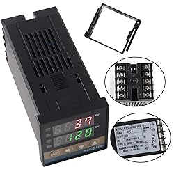 - REX-C100 Temperature Controller: Measuring accuracy: ±0.5%FS Cold-end compensation tolerance: ±2 (can be modified by software in 0~50 ) Resolution: 14 bit Sampling cycle: 0.5 Sec Power : AC 220V 50/60HZ Process value (PV),Setting value (SV) Output, alarm and self-tuning can be indicated by:LED PIN control (including ON/OFF, step-type PID and continuous PID) Self-tuning control Relay output: contact capacity 250V AC 3A (resistive load) Alarm function output: 2 way Proportional band (P): 0~full range (ON/OFF control when set to 0) Detective temperature range: 0 to 400 Insulation resistance: >50M ohm(500V DC) Insulation resistance : 1500V AC/min Insulation resistance : Power consumption <10 VA Service environment: 0~50 environment with no corrosive gas 30~85% RH K Thermocouple Probe Cable: Sensor diameter: 4.5mm Temperature rang: 0-400 Internal Insulation: Fiberglass External Shielding: Insulated shielding Solid State Relay SSR-25DA: Output Current: 25A Input Voltage: DC 3-32V Output Voltage: 24-380V AC Output Voltage Range: Standard type Package included: 1 X PID temperature controller 1 X K Type probe sensor 1 X Solid state relay 25DA 1 X Aluminum heat sink