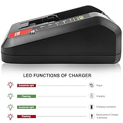 - About us: As a professional manufacturer of power tool batteries and chargers, Futurebatt specialize in designing and manufacturing varieties of power tool batteries and chargers with high quality and security testing standards. Fit Battery Model: for Porter Cable ALL 20-Volt MAX Lithium-Ion Battery PCC680L, PCC681L, PCC682L, PCC685L, PCC685LP, PCC699L, PCC680 PCC685 for Black+Decker ALL 20-Volt MAX Lithium-Ion Battery LBXR20, LBXR2020, LBXR2020-OPE, LBX4020, LB2X4020, LB2X4020-OPE, LB20, LBX20, LBXR2520 Replacement Charger Model: * Replace for PORTER-CABLE 20V MAX Lithium Battery Charger PCC691L, PCC692L, PCC699L, PCCB122C2 * Replace for BLACK+DECKER 20V MAX Lithium Battery Charger LCS1620B, BDCAC202B Safety Protections: 1. No charger to a defective battery Auto Cut off when Short-circuit 2. Stop when charger faulty detected 3. Stop charging when charging over and stop charging when overheat. Charger Indicator Lights: Power On= Red light solid Fully Charged= Green light solid Charging= Green light flashing Battery Defective= Red light flashing Temperature Anomaly= Red light flashing Easy-to-read LED status indicator lights: 1. The easy-to-read LED status indicator lights let you know when your battery is fully charged, and the device will automatically enter sleep mode once the charge is complete. 2. This not only saves on energy costs and avoids over-charging, but it also preserves the lifespan of your battery.