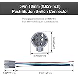 【Plug & Play Convenience】Designed for easy connection to standard 5-pin 16mm (5/8") push button switches. Eliminates the need for soldering, saving time and effort during installation or switch replacement 【Secure and Reliable Connection】Features a snug fit that securely locks onto the switch terminals, ensuring stable electrical contact and preventing loose connections. Easy to snap on and off for maintenance 【Durable Construction】Made of high-quality, engineered plastic for excellent durability and heat resistance. The copper terminals ensure good conductivity 【Universal Compatibility】This harness connector is designed to be compatible with most 5-pin 16mm momentary or maintained push button switches. The switch's function (ON-OFF, ON-ON, etc.) is determined by the switch itself, not this connector 【5.9 Inch Wire Length】This harness comes with a 5.9 inch (15 cm) lead for flexible wiring in control panels, automotive applications, or industrial equipment. The stripped and tinned wire ends allow for easy connection to screw terminals or other connectors