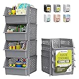 [Organize with Ease and See Everything at a Glance] No more digging through clutter. These stackable open front storage bins for toy storage or garage storage bins let you instantly spot and grab what you need, thanks to their clear, open-front design. Perfect for tools, instruments, toiletries, and more. Set of 4. Single bin size: 11.5"L x 14.5"W x 7"H. [Save Space and Declutter Any Room] Whether in the garage, kitchen, or kids’ room, these stacking storage bins open front or storage drawers help you maximize vertical space without taking over the floor. Nestable when not in use to free up even more storage. [Access Items Quickly Without Unstacking] Designed for convenience, these plastic storage bins allow easy reach to contents at any level, no need to lift the bin on top just to grab what’s inside. [Keep Contents Fresh with Ventilated Sides] The breathable mesh design of these organizer bins and plastic drawers ensures airflow to prevent moisture buildup, keeping toys, food, and supplies clean and dry. [Strong, Stable, and Made to Last] Built from durable plastic, these large stackable storage drawers open front can handle heavy items without warping or tipping over, perfect for everything from pantry goods to garage tools.