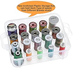 - New brothread - EMBROIDER AND SEW YOUR LIFE! New brothread not only makes great embroidery supplies and sewing supplies, but also is a professional manufacturer producing plastic moulding more than 15 years. NOW New brothread makes premium clear plastic storage box to store and carry different embroidery/sewing/quilting threads and other small sewing/embroidery/quilting items. Advantages of New brothread multi-functional clear plastic storage box: 1, High quality plastic storage box is sturdy and compact, rarely get broken during transportation. 2, Hold your thread spools orderly organized. 3, 4 layers have a capacity to hold up to 80 thread spools, each layer can be stacked & locked with each other. 4, Superb transparency of the storage box allows you to identify the colors from outside easily. 5, With the portable box, carrying your threads anywhere to do embroidery & sewing is available. 6, Appropriate space can store lots of mini king spools from different brands. Plastic pins can also hold thread spools upwards. 7, A special small storage space on top of the lid can store other small sewing items such as needles, scissors, mark pens, pins, bobbins etc.