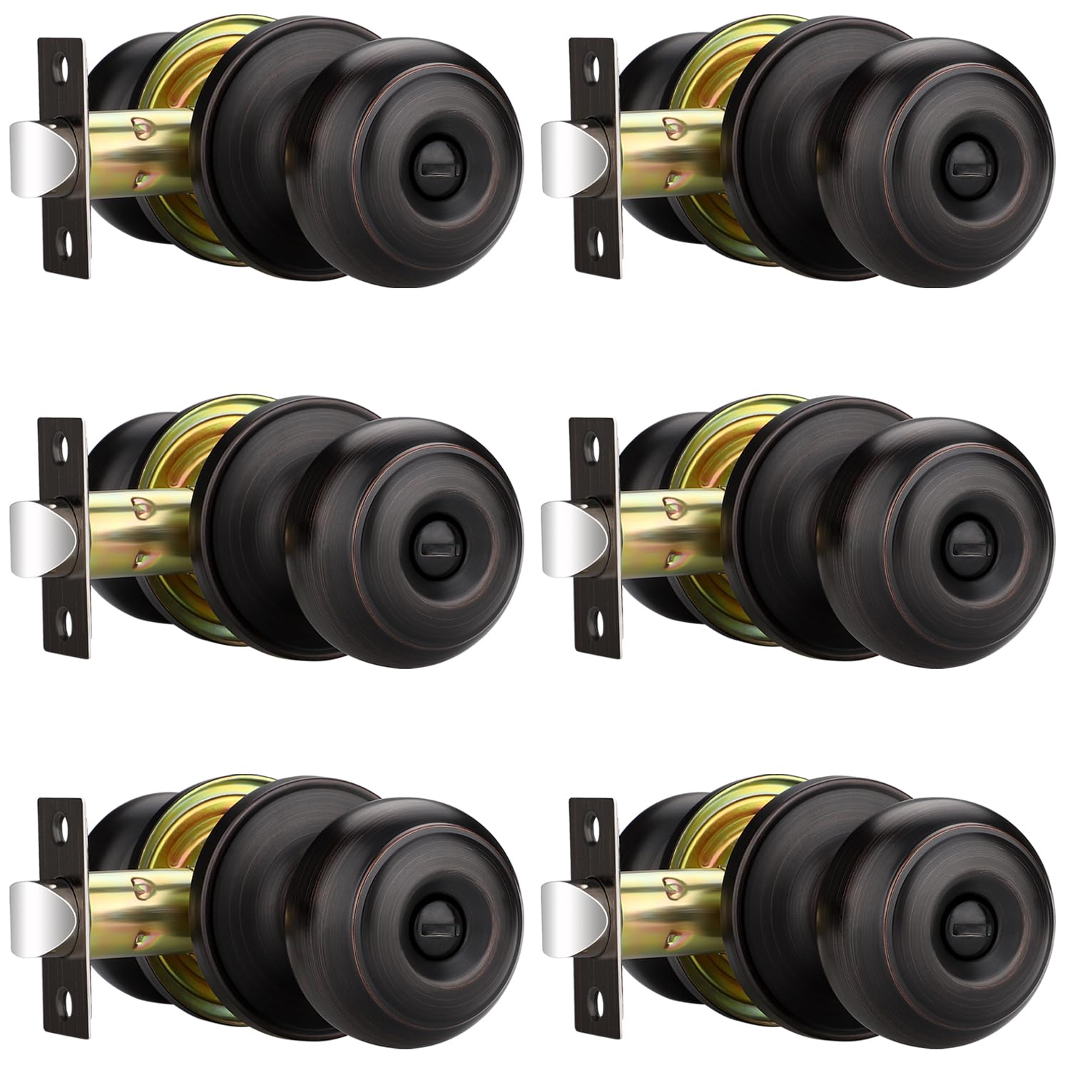 6 Pcs Door Knobs with Lock and Key, Entry Door Handles Satin Brass, Bedroom Bathroom Front Door Handle with Keys, Keyed Alike Door Levers for Interior Exterior Use, Square Modern Door Handles