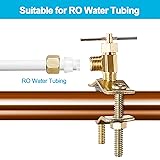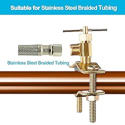 【Health material】:Lead free brass self piercing valve for both potable and non-potable water;1/4 inch OD compression outlet and supports 3/8 inch to 1-6/15 inch OD tube. 【Connect multiple items】:Used for adding an outlet to Ice maker,Refrigerator,Water filtration system,Ice maker outlet box and Drinking water faucet ect. 【Ideal water splitter】:Our valve body is single piece brass construction,there is no need to consider replacement for several years. 【Outstanding performance】:Suitable for both cold and hot water systems.Equipped with soft and durable rubber gaskets for better fitting of different diameter pipes. 【Easy installation】:The location of installation on the water supply pipeline can be freely selected and no need to turn off water; A clear installation instructions help you complete your work easily and quickly.