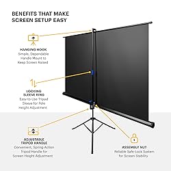 SUPERSIZE YOUR MEDIA ENTERTAINMENT | KODAK Portable Projection Screen Displays Stunning 8K/4K Ultra HD 3D Movies, Cable TV, Sports, School Presentations, Office PowerPoints, Video Games, Streaming Services, Watch Party Content & Screencasts from Your Phone | Versatile, Lightweight, Travel-Friendly Design is Perfect for Indoor & Outside Viewing in LED, LCD & DLP Formats 60” WHITE PROJECTOR BACKGROUND | Durable Matte White Fabric Projection Surface is Constructed of Premium PVC & Terylene Fabrics for Beautiful Full Color Output & Fantastic Anytime Performance in All Lighting Conditions | Material Rejects Ambient Light, Prevents Wrinkles, Minimizes Pixelation & Ensures Maximum 16:9 Image Fidelity | 1.0 Gain Reflection & 160° Viewing Angle ADJUSTABLE TRIPOD STAND SETS UP FAST | Foldable Black Metal Stand Locks Into Place & Breaks Down Quickly for Discreet Storage | Easy Features Include a Simple Locking Frame, Smooth Rolling Screen, Nonslip Feet & Convenient Height Adjustment for Effortless Setup at Home & On the Go | Rugged Poles Also Help to Reduce Shake & Keep Display in Place for Extended Viewing INCLUDES PRO CARRY BAG BY KODAK | Compact & Ultra-Portable Projection Screen with Stand Arrives with a Matching Case for Toting Your Gear from Home to Car to Work & Beyond | Unlike Bulky Inflatable Blow Up Screens, Ours Collapses Down to the Size of a Suitcase for Stress-Free Carrying with a Built-In Handle, Weather-Proof Fabric & Sleek Black Design for Stylish Commuting ENDLESS WAYS TO WOW AN AUDIENCE | Jumbo Indoor Outdoor Projector Screen Pairs Well with All Your Favorite KODAK Mini Portable Projectors & Compatible Electronics Such as Smartphones, Gaming Consoles, Laptops, USB Devices & More | Entertain Large Crowds at Home & in the Boardroom, Classroom, Church, Synagogue, Weddings, Birthdays, Block Parties & Backyard Events