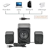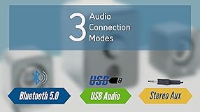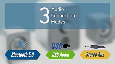 Dynamic Versatile Speaker System: Great, 2.1 audio system with three input option modes for music playback: USB-A, Bluetooth 5.0, and 3.5mm aux audio plug. The multicolored RGB LED lights that encircle the volume control knob add a subtle yet stylish dynamic effect, especially for gaming. Great Quality Sound: Subwoofer and two satellite speakers for rich, clear, high-quality sound & bass. Has Integrated volume and mode controls. USB-A cable is 3 ft & Aux cord cable is 3 ft. 3 Easy Connection Modes: Can choose between 3 easy input modes for music playback such as Bluetooth 5.0, USB-A, and 3.5mm audio aux cable plug. The speaker speaks each mode when button is pressed. For all three connection modes, it is necessary to plug in the USB connector to power the speakers and lights Widely Compatible: Ideal for PC and laptop but just as great with smartphone, tablet, iPad, MP3 player, iPod, MacBook, Chromebook, and more. Bluetooth mode to work with iOS, Android, and most Bluetooth wireless enabled devices. Plug-and-play installation with USB and Aux; Windows, Mac, Linux, and Chrome OS compatible 3 Yr Mfg Warranty: 3 year manufacturer warranty. Package includes speaker and quick instruction product guide.