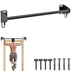 Heavy Duty Construction: This fully welded pull up bar wall mount is made from thick alloy steel with a powder-coated finish, ensuring durability and rust resistance. The chin up bar supports up to 440 lbs, delivering reliable strength for heavy duty workouts Ergonomic Grip Design: Featuring a 1.3-inch handle diameter, this mounted pull up bar provides a secure and comfortable grip suitable for most hand sizes and body weights, making each repetition safer and more effective Versatile Training Options: Equipped with two carabiners, this pull up bar doorway allows you to attach resistance bands for suspension training, cross-training, and strength workouts, expanding your fitness routine with multiple exercise possibilities Flexible Installation: With 36-inch hole spacing, this pull-up bar fits most home doorways. It can also be easily installed on a support beam or joist 100% Satisfaction Guaranteed: If you have any questions about the product, please feel free to contact us. We are committed to ensuring your satisfaction. US Patent Pending. All Rights Reserved