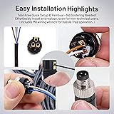 M8 3-Pin Male Connector: This pack includes 5 M8 connectors with 3 pins, designed for secure and efficient signal and power connections in industrial automation systems.‌ High performance transmission ‌ : The connector has the characteristics of low impedance and low loss to ensure the efficiency and accuracy of electrical signals in the transmission process, and is suitable for automotive applications requiring high-speed data transmission. Field Wireable Design: These connectors are field-wireable, allowing for easy and quick assembly on-site without needing specialized tools, making them ideal for flexible installations. Straight Assembly Type: The straight plug design facilitates easy integration into existing setups, providing a reliable connection in space-constrained environments. Unshielded Design: These unshielded connectors are suitable for low-EMI environments, offering a straightforward and cost-effective solution for applications where shielding is not required. Durable Industrial Use: These connectors are designed for a variety of applications, including sensors, robotics, and automation equipment, ensuring long-lasting performance in demanding conditions.